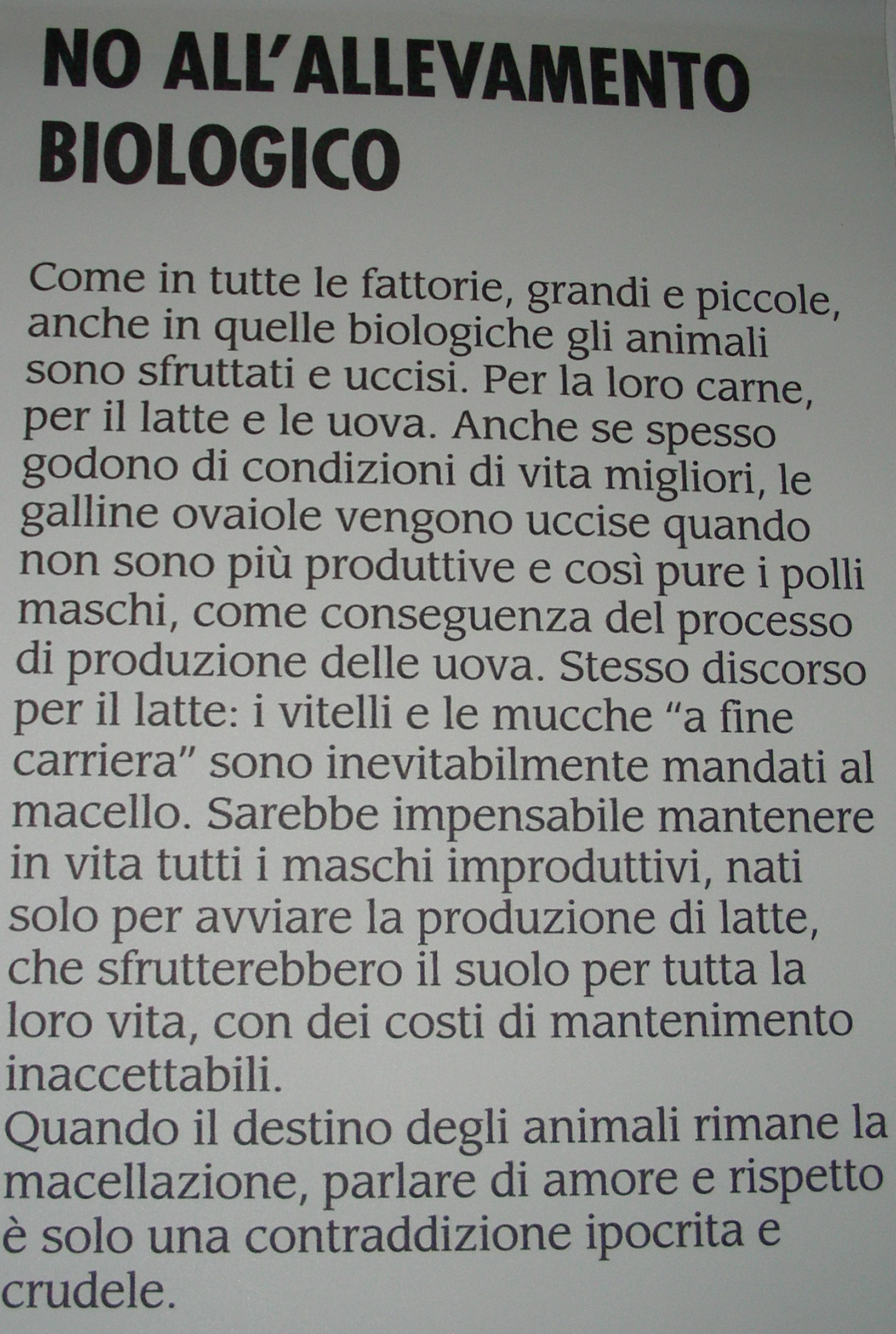 - No all’allevamento biologico