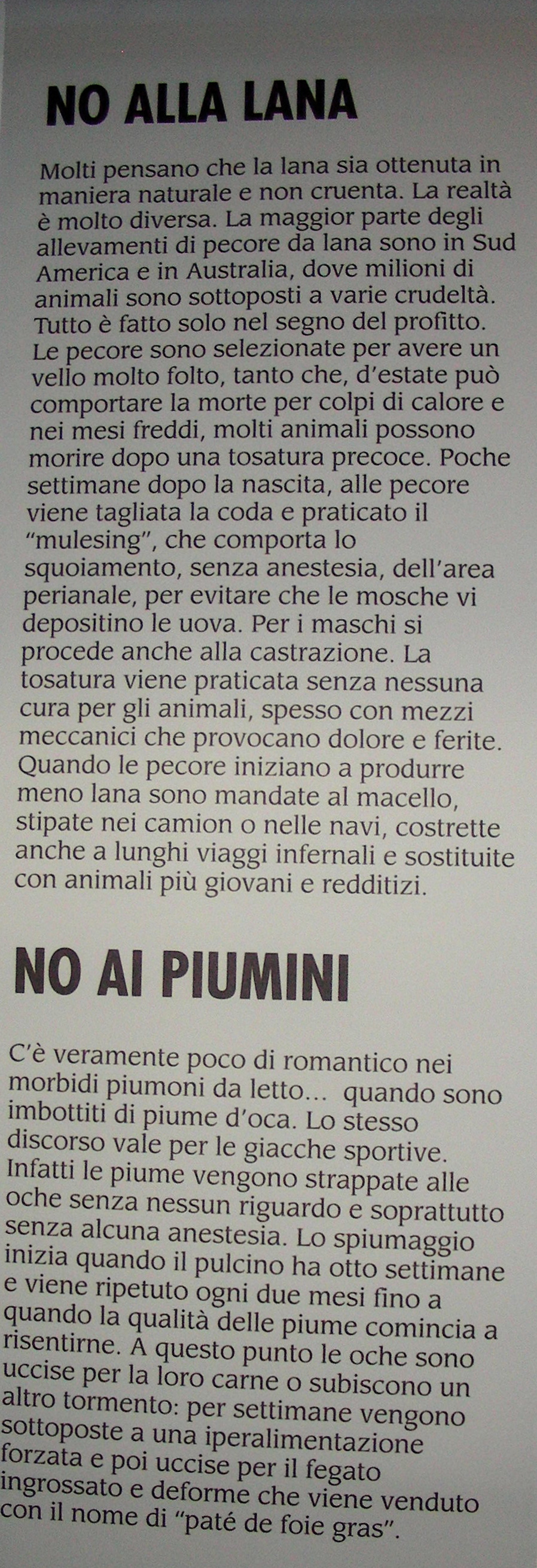 - No alla lana, no ai piumini